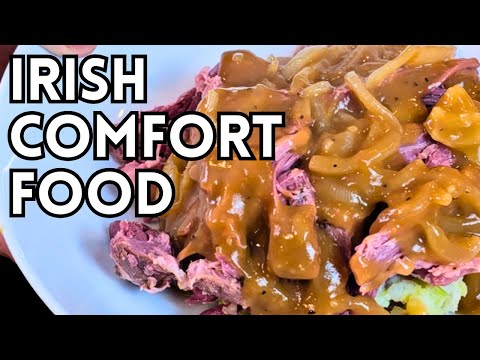 This hearty meal features tender corned lamb, a savory twist on the traditional St. Patrick's Day dish. Served alongside creamy colcannon and smothered in a rich Guinness onion gravy, it's a comforting and flavorful celebration of Irish cuisine