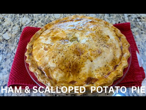 A comforting and savory double-crust pie filled with tender ham and creamy scalloped potatoes, perfect for a hearty meal.
